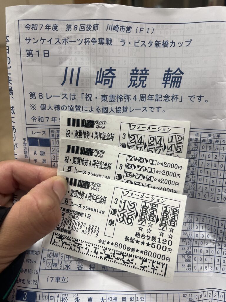 18:40 川崎競輪場第8レースで みんな金持ちになろうな!!!!!
